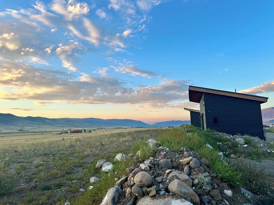 Located in Paradise Valley this charming cabin is a dream. With 1 cozy open floor plan featuring a queen bed and a lovely loft with an additional full bed, guests will feel right at home. The in suite bathroom features a large shower and stylish decor. With stunning views from bed through our panoramic doors it's hard to leave with so much to do in the valley.