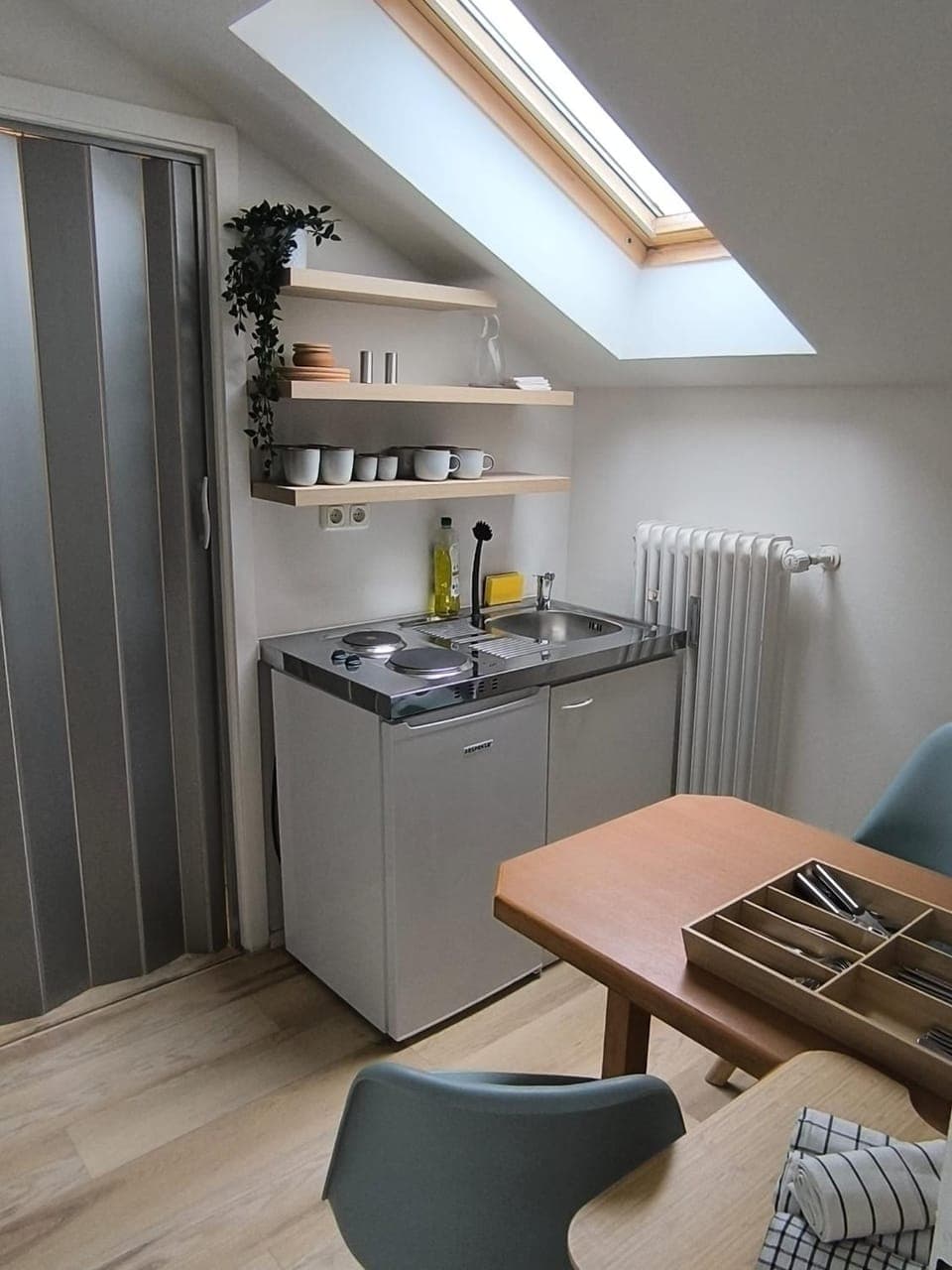 Schöne gemütliche Räume, perfekt für einen Kurzaufenthalt übers Wochenende. Es war alles da, was man braucht. Bett, Fernseher, wirklich gutes WLAN, eine süße kleine Küche mit Herd und Kühlschrank und ein Bad mit Dusche und WC. Um die Fenster zu öffnen, musste ich zwar einen Stuhl nehmen, aber so ist das Leben mit kleiner als 1,65m 😬