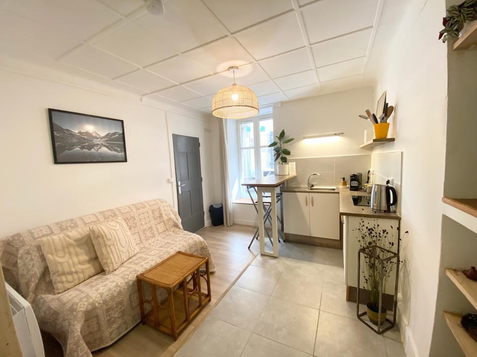 Petit appartement charmant & fonctionnel, bien équipé (cafetière avec dosettes, bouilloire avec sachets de thé et petits biscuits).