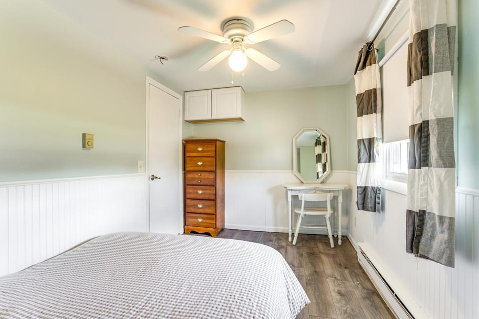 This vacation home features accommodations with a patio. Both parking on-site and free Wifi are accessible at Pet Friendly with Yard 1 Mi to Wilson State Park.
