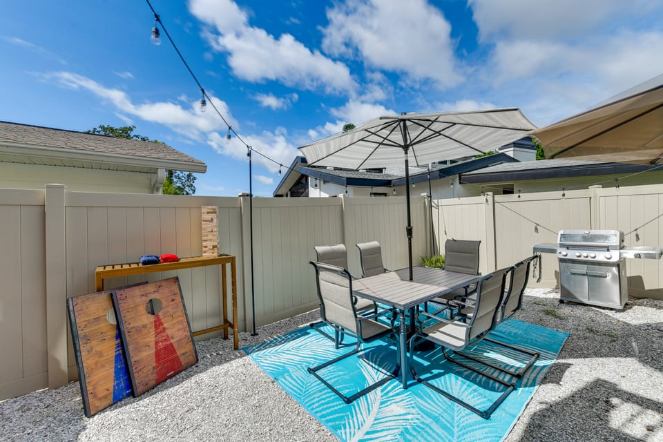 Love waking up by the water? This 4-bedroom, 2-bath Palmetto vacation rental blends laid-back luxury with the leisurely pace of Gulf Coast living. Step into local life at this chic condo, offering easy access to the boating and culinary delights waiting at the Regetta Pointe and Riviera Dunes Marinas. Savor Manatee River views on the deck or share stories by the fire after hitting pristine beaches. Book today for unforgettable fun!