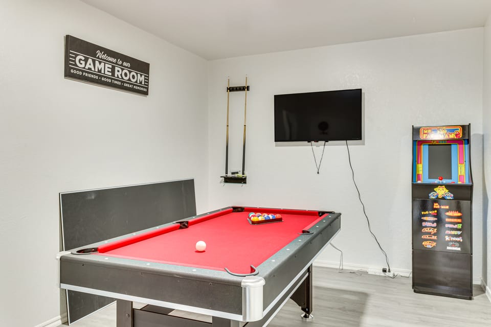 - Game room w/ convertible pool/ping-pong table & Ms. PacMan arcade game