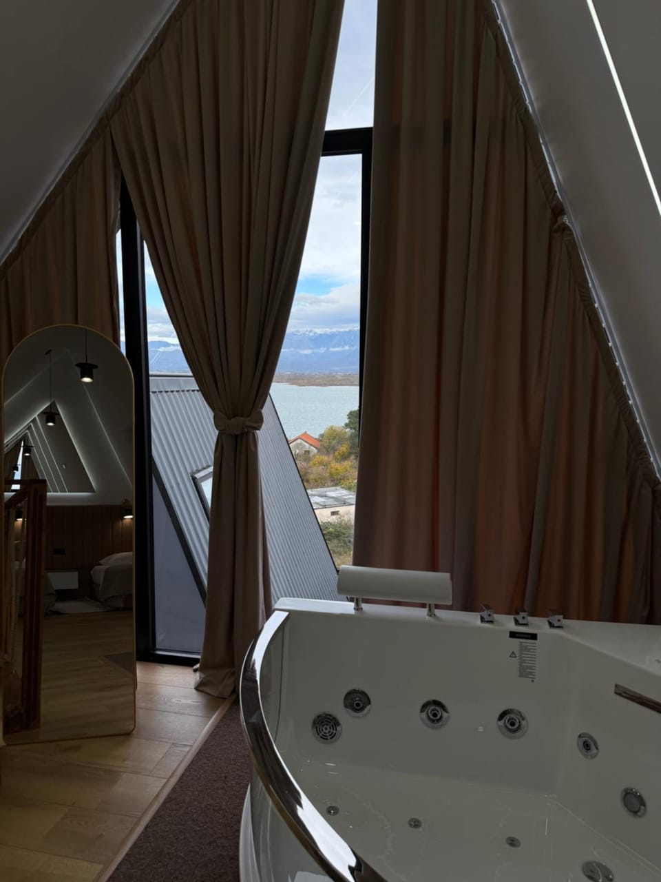 Sehr gute Einrichtung, toller Blick auf den See, sogar einen Whirlpool und eine Waschmaschine gab es. Die Einrichtung war sehr modern.