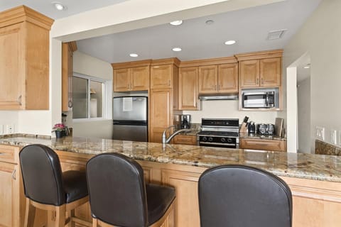 - Barstool seating for 3 at breakfast bar