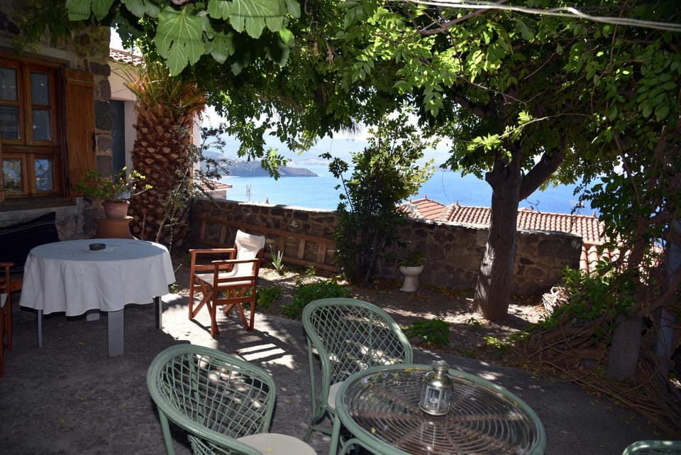 Der Gastgeber hat uns vom Parkplatz abgeholt und uns zur Unterkunft geführt. Er hat uns im Haus die Ausstattung gezeigt und uns ein paar Tips für Molivos mit auf den Weg gegeben. Das Haus ist sehr liebevoll und atmosphärisch eingerichtet. Man hat einen phantastischen Blick aufs Meer sowohl von Innen als auch von der Terrasse. Für das erste Frühstück waren Kaffee, Honig, Brot und Butter bereit gestellt. Wir waren begeistert.
