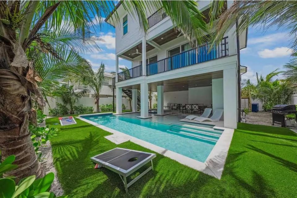 Discover the beauty of Bradenton Beach with a stay at Gorgeous 7 bedroom Beach house 2 minute walk to Beach! Heated pool and spa!, a top rated House with amenities such as Air conditioning, Dryer and WiFi/Internet, and more.