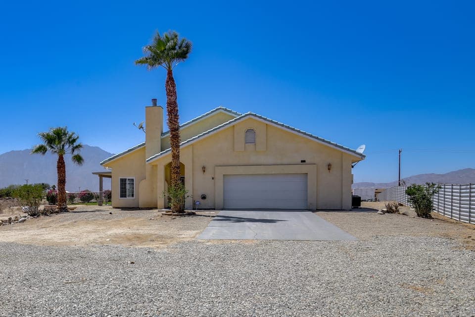 Whether here for a rejuvenating group getaway or a sunny extended stay, you’ll find an ideal base at this Desert Hot Springs vacation rental! Unwind in the saltwater pool or hot tub while basking in scenic 360-degree views. Between Joshua Tree hikes and trips to Palm Springs, enjoy drinks on the patio and starlit nights by the fire. Secure your desert haven!