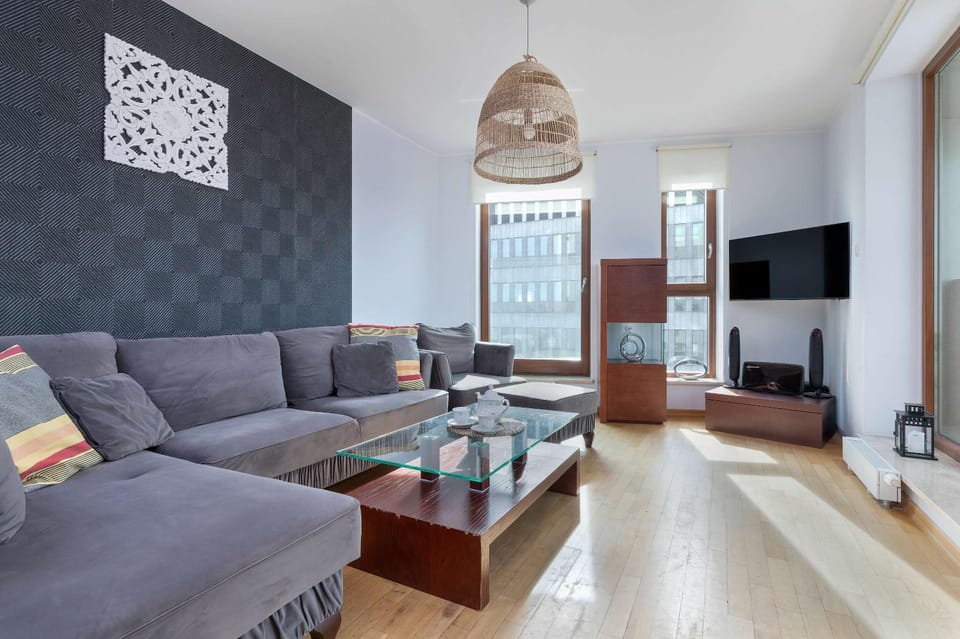 Just a 7-minute walk from Gdynia Central Beach and 400 yards from Kosciuszki Square, Sea Towers Apartament z Widokiem na Morze, 3 Sypialnie i 2 Balkony by Noclegi Renters features accommodations in Gdynia with a terrace.