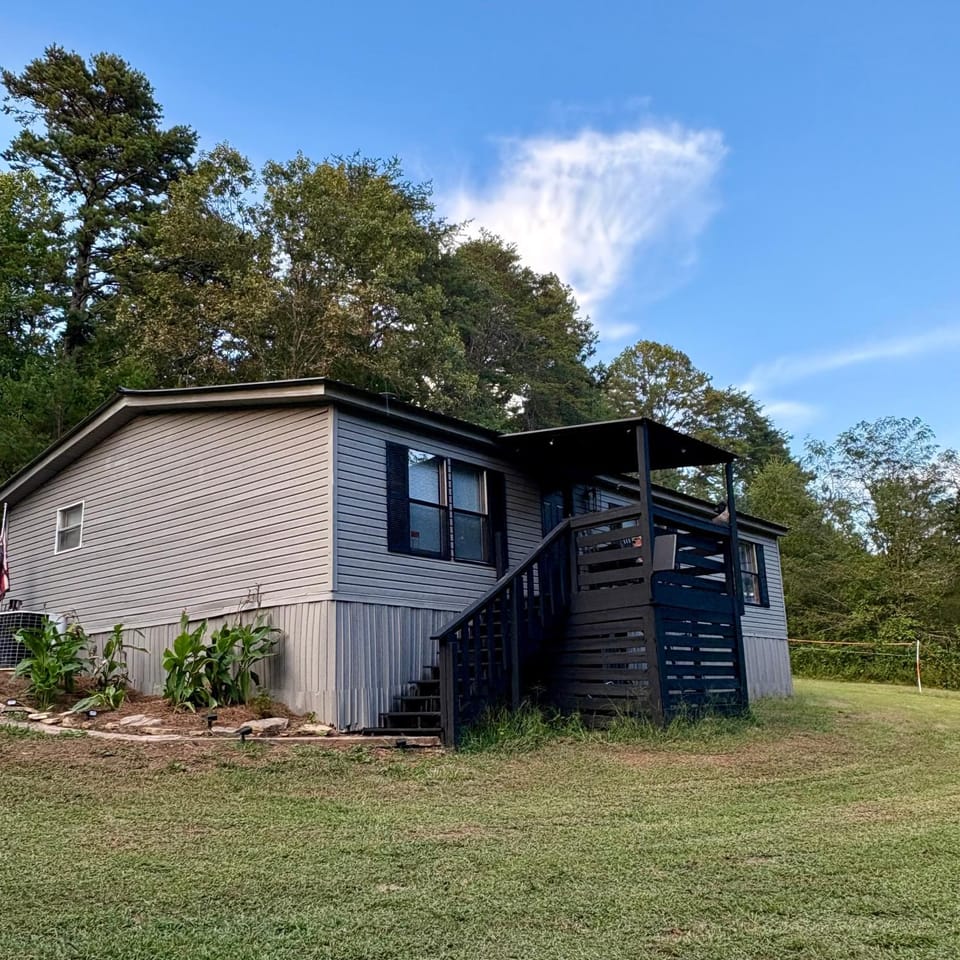 The location was beautiful, the house is a parked double wide that is in good condition and styled up like a bear themed cabin. The woodsy vibes were very relaxing and the hot tub tiki hut was an amazing touch. Everything worked, floor was a little creaky but I think it just added to the cabin feel. Good privacy and the owners were attentive and willing to meet any additional needs.