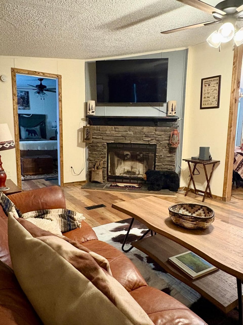 "The location was beautiful, the house is a parked double wide that is in good condition and styled up like a bear themed cabin. The woodsy vibes were very relaxing and the hot tub tiki hut was an amaz..."