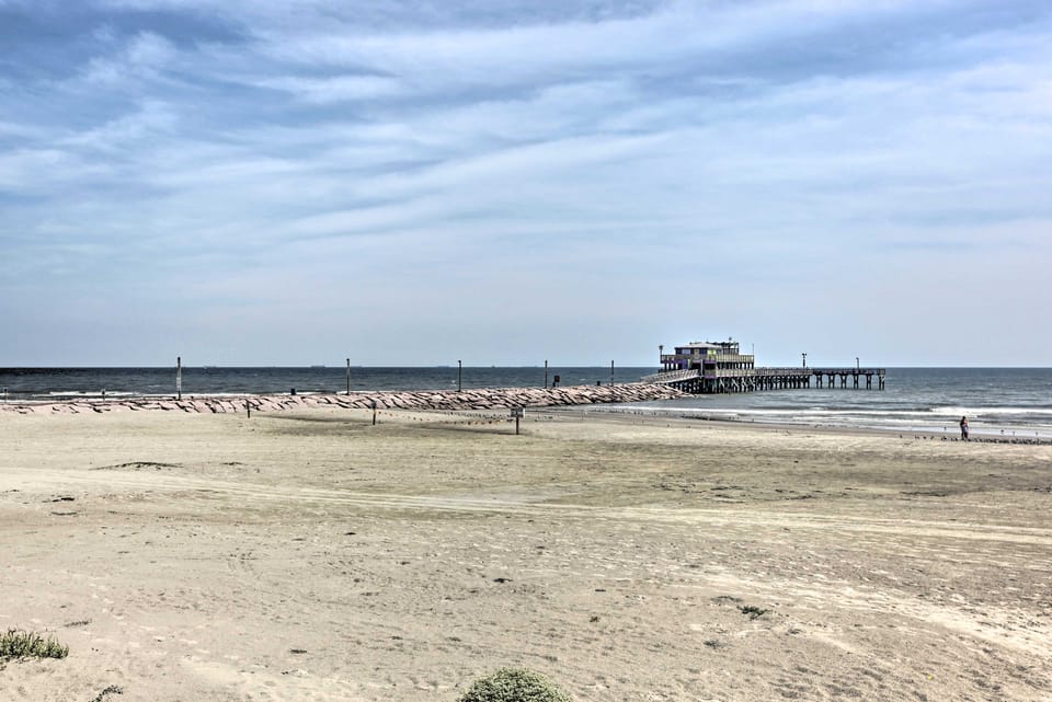 Salt in the air, sand in your shoes, and not a care in the world — welcome to Galveston! Perfect for a pre-cruise stay or full-on coastal getaway, this condo ensures a memorable retreat. Cast a line at the nearby pier or visit Moody Gardens for a day full of thrills and family fun. Then, take advantage of the fully stocked kitchenette or check out eateries just down the road. Book this 1-bedroom, 1-bath vacation rental today!