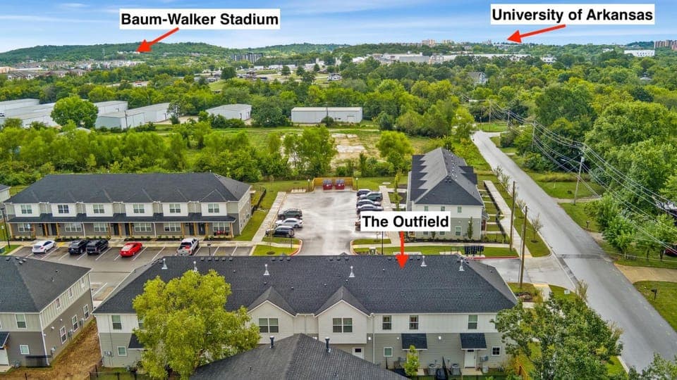 The Outfield - Stays of 30 days or more - 2mi to Downtown is located in Fayetteville, just 1.9 miles from Bud Walton Arena and 2.1 miles from Fayetteville Town Center.