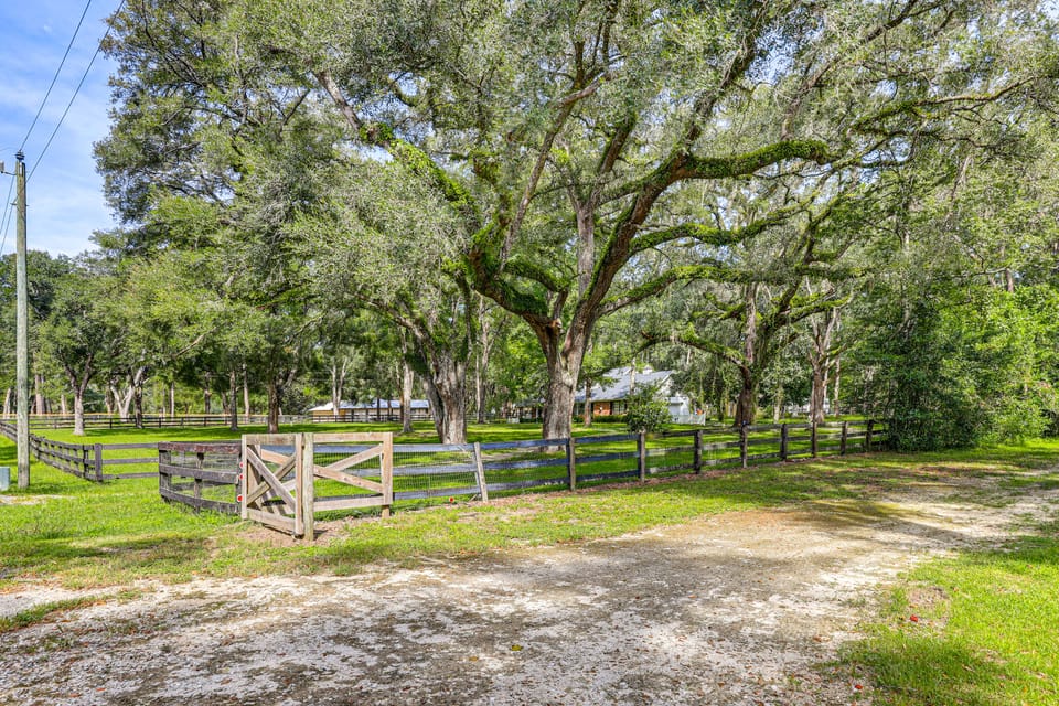 Book this 2-bedroom, 1-bath vacation rental for your next North Central Florida retreat! The home makes the perfect base for competitors visiting the World Equestrian Center, or families exploring the best of the Nature Coast. After adventures at Silver Springs or Canyons Zip Line Adventure Park, enjoy a cookout on the patio while your furry friends roam the fully fenced 5-acre property. Saddle up and reserve your Williston stay today!