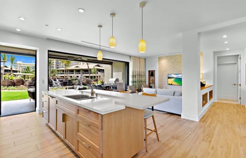 A few steps across the hall is Suite 930, which boasts one of the resort’s largest 1BR floor plans and sweeping views of the lush West Maui Mountains. Open the expansive glass doors to your private lanai and enjoy the frequent afternoon rainbows.