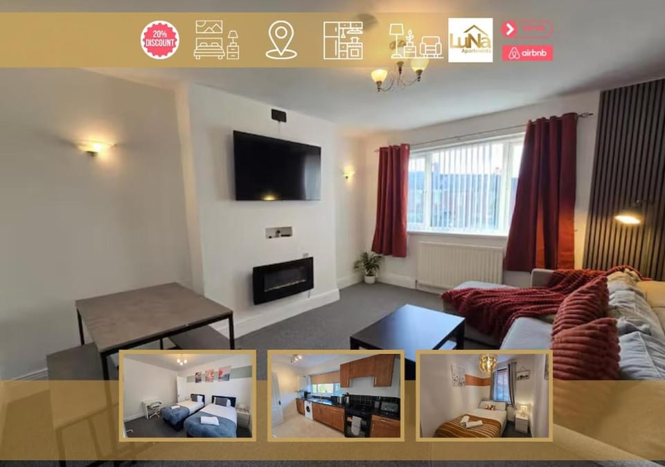 Indulge in a peaceful retreat at Contractors! Free parking, Wifi, 6 BDR, 10 Beds!, our elegant House in Gateshead. Enjoy amenities including Free Parking, WiFi/Internet and Free WiFi/internet, and more.