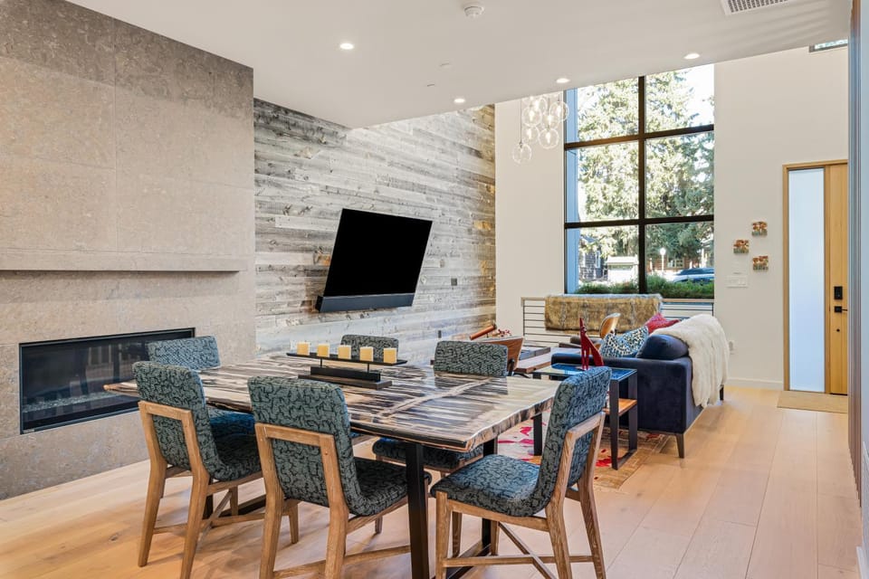 Indulge in a peaceful retreat at 6 bdrm/5ba at the base of Snow King walking distance to Town Square, our elegant House in Jackson. Enjoy amenities including Air conditioning, Balcony/Terrace and Dryer, and more.