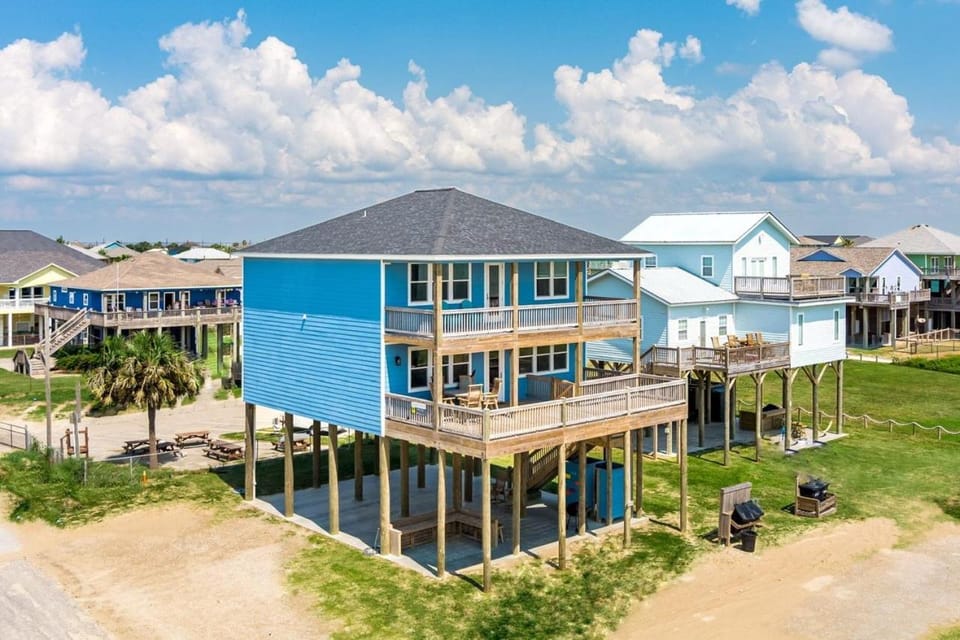 Soak up the beauty of Bolivar Peninsula in our House, 2nd row | Steps to Beach | Sleeps 18. With a range of amenities such as Air conditioning, Dryer and WiFi/Internet, you'll feel right at home.