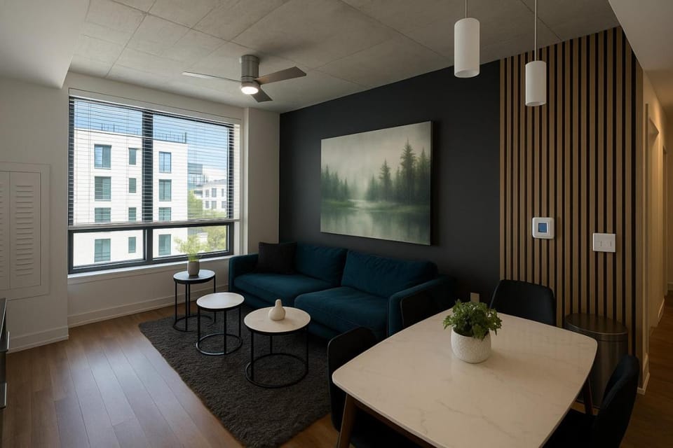 Indulge in a peaceful retreat at The Downtown Gem | Modern Luxe Escape 2, our elegant Apartment in Vestavia Hills. Enjoy amenities including Air conditioning, Dryer and WiFi/Internet, and more.