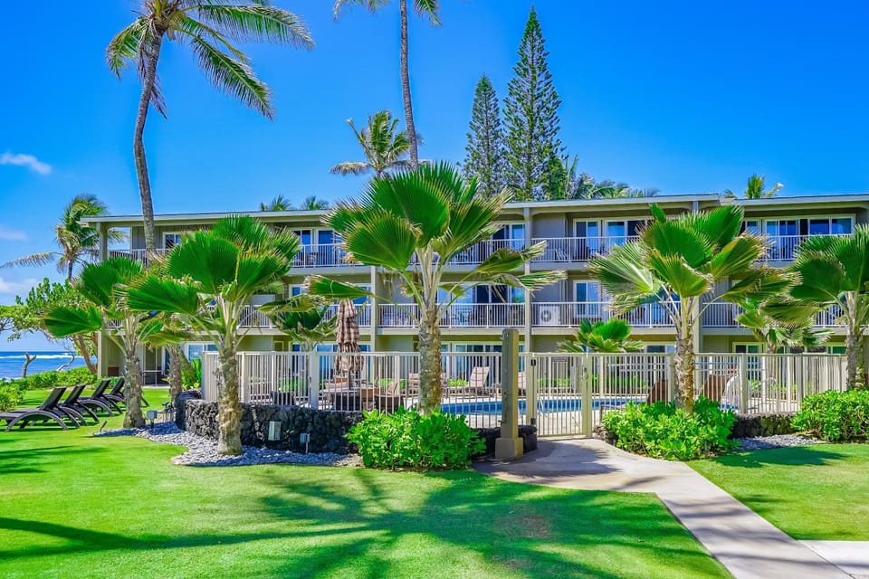 Experience vacation in Kapaa with our Apartment, Waterfront condo on the ground floor with a pool, ocean views & beach access. Enjoy amenities such as Air conditioning, Dryer and Kitchen, and more.