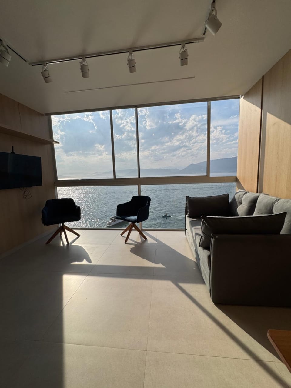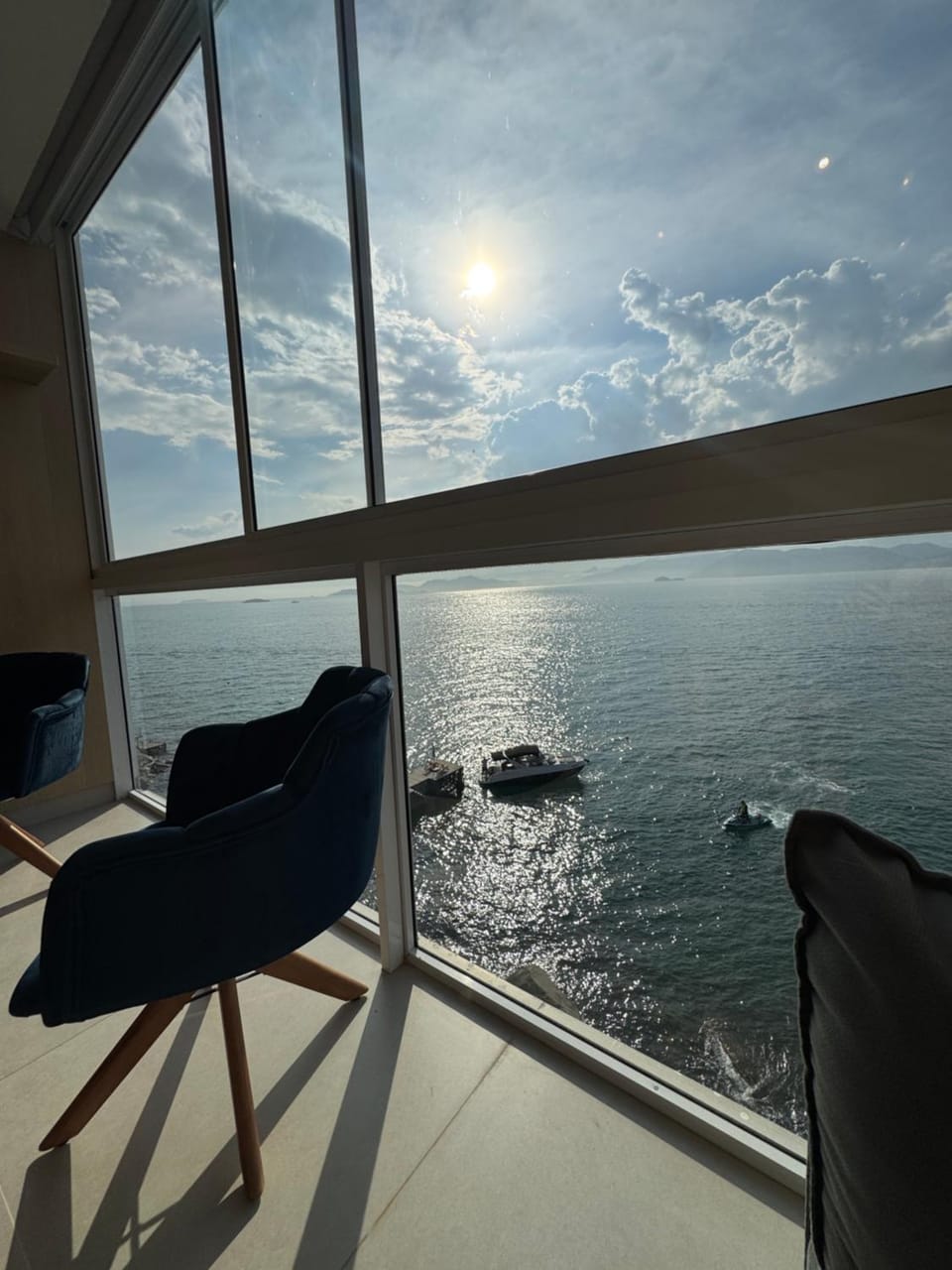 Excelente localização. A vista do mar que se tem do apartamento é linda, de se tirar o fôlego. O apartamento é novo, o mesmo ocorrendo com todos os seus itens. O local é acolhedor e aconchegante, bem como muito bem equipado. Fred e Camila respondem rápido e me assessoraram em tudo o que eu precisei, além de darem dicas valiosas quanto a passeios e restaurantes. A piscina é maravilhosa, além de aquecida, dela temos uma incrível vista do mar. Há área para se fazer churrasco, bem equipada e iluminada, inclusive à noite, com vista para o mar. No condomínio onde se localiza o apartamento há deck para acesso a lanchas, bem como uma pequena trilha para o acesso ao mar junto a rochas. Fizemos mergulho com snorkel e a vida marinha ali próxima é muito rica. No deck, há cadeiras para apreciação da vista. Passamos horas contemplando a linda paisagem.