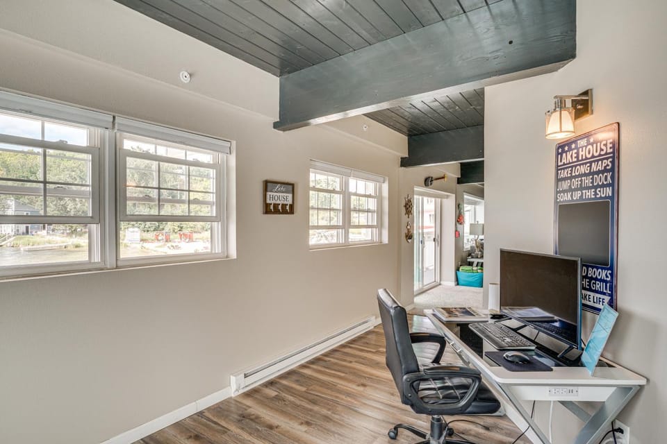 What amenities are available at Lakefront Condo with Beach Access in Campbellsport!?