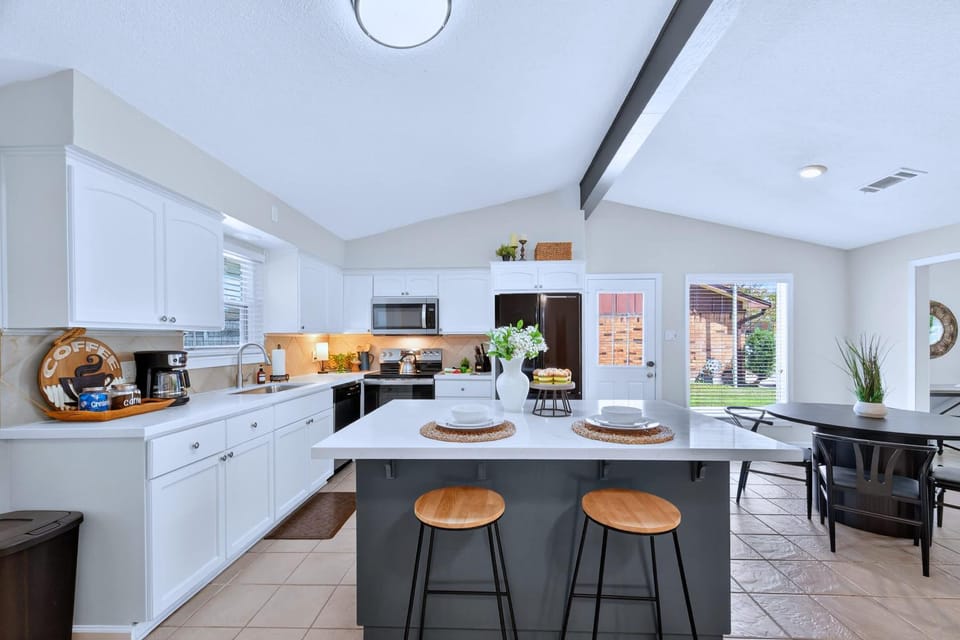 Nestled in La Porte, this House is perfect for your next vacation. Enjoy with Arcade and Covered Patio Sleep 9 in this 4 Bedroom 2 Bath Home 5 star host Deer Park TX's top-rated amenities, including Free Parking, Garden and WiFi/Internet, and more.