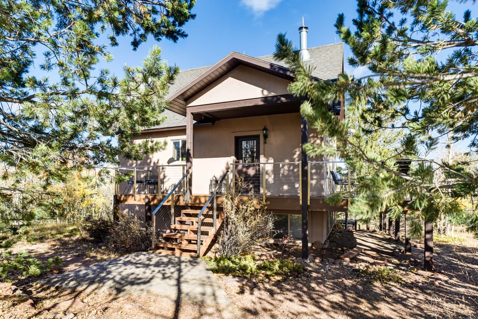 Tucked in the hills above Mueller State Park, this Cripple Creek vacation rental is your gateway to Colorado adventure! Spend your days touring historic gold mines, hiking the Rockies, or trying your luck at local casinos. Prefer to stay close to home? This 2-bed, 2.5-bath cabin invites you to enjoy an al fresco meal on the deck or roast s'mores by the fire pit — all while taking in postcard views of Pikes Peak!