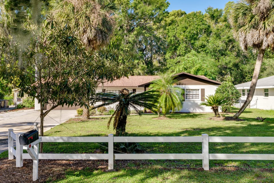 Dock your boat at this waterfront vacation rental in Tavares! Set on a canal fed by Lake Harris, this 2-bedroom, 2-bath home puts the Harris Chain of Lakes right in your backyard. Launch from the private dock in the morning, then grab lunch downtown or watch takeoffs at Seaplane Base FA1. When you’re ready to explore, Mount Dora and Eustis are both under 10 miles away. Cast off on a new adventure — book today!