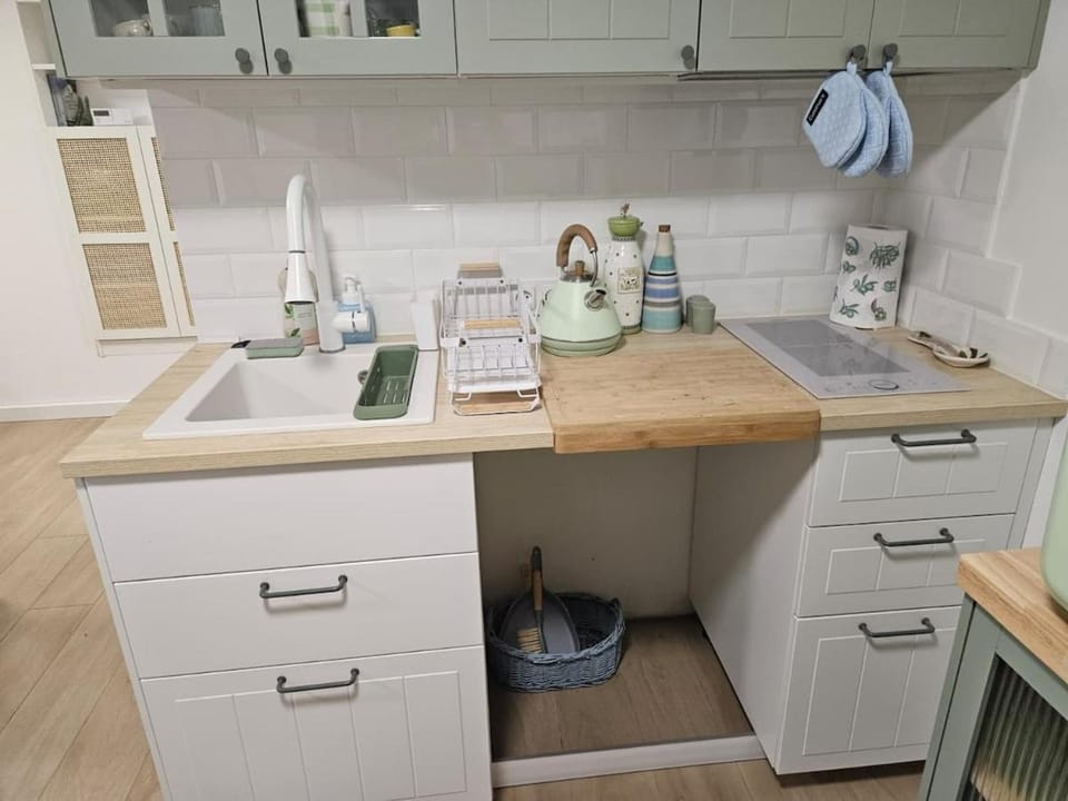 Lokal nowy, urządzony z gustem, nie oszczędzano na wykończeniach. Bardzo dobra lokalizacja, blisko do centrum i dworca a jednocześnie cicho, wejście przystosowane dla osób z trudnościami w poruszaniu się, tak samo prysznic (aczkolwiek po prysznicu jest dużo sprzątania) , fajnie że była miotła do sprzątania i zestaw chemii do czyszczenie (dla mnie to ważne). Lokal posiada indukcję oraz lodówkę. Sztućców i kubków nie brakowało, są też garnki .
