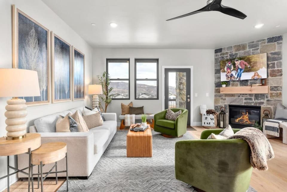 Indulge in a peaceful retreat at Blue Skies Lakeside | Family-Friendly Getaway w/ Hot Tub & BBQ, our elegant House in Jordanelle Reservoir. Enjoy amenities including Air conditioning, Balcony/Terrace and Fireplace, and more.