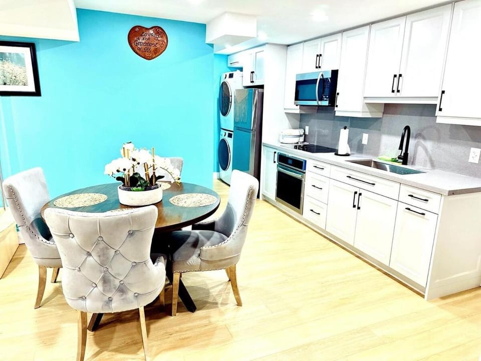 Modern 2BR suite Kitchen Workspace Laundry