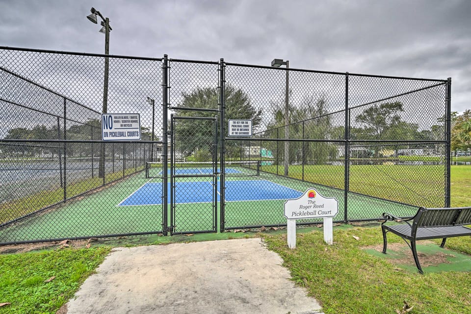 What amenities are available at Walk to Shore! Surfside Beach Gem w/ Game Courts?