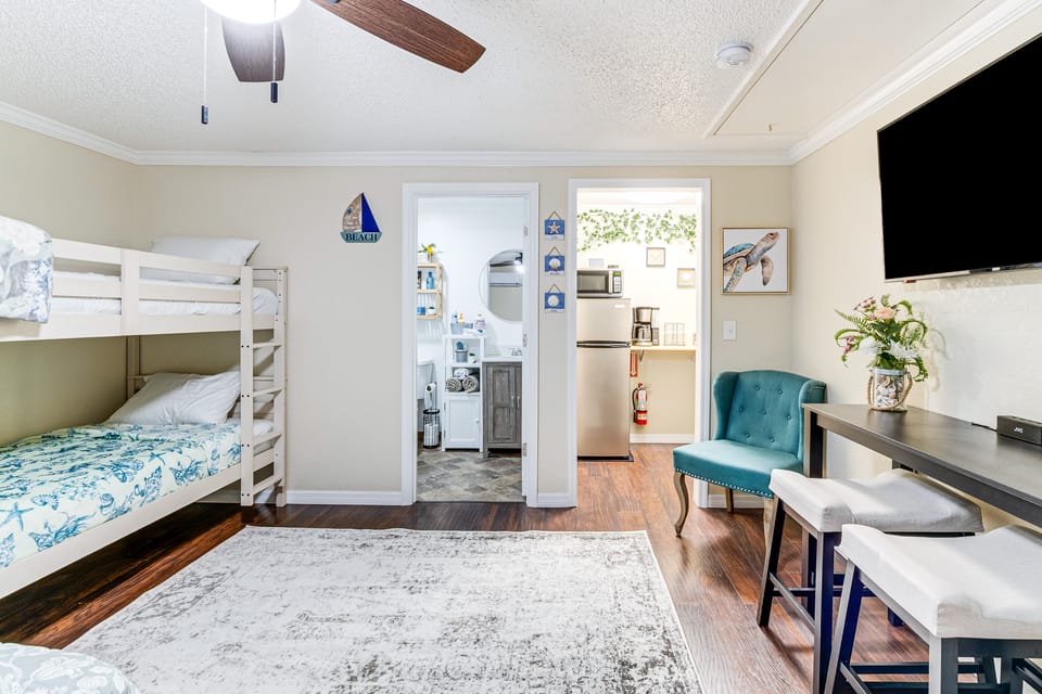 - Studio: 1 king bed, 1 twin bunk bed