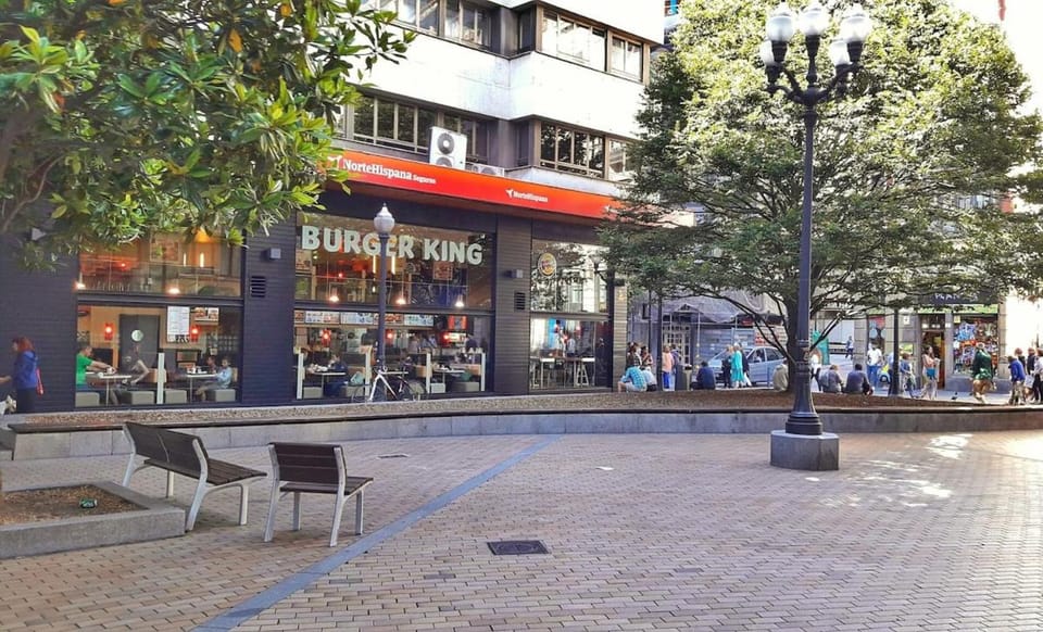 En el centro entre el puerto y las playas