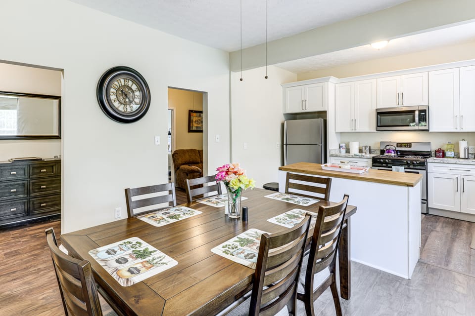 History, hospitality, and heritage — get the authentic Tuskegee experience at this 4-bed, 2-bath vacation rental. The house, a family home for generations, is the perfect base for campus visits and group get-togethers. After exploring Main Street architecture or hiking in nearby hardwood groves, unwind with some home cooking in the full kitchen. The best of town and tradition are waiting to be discovered!
