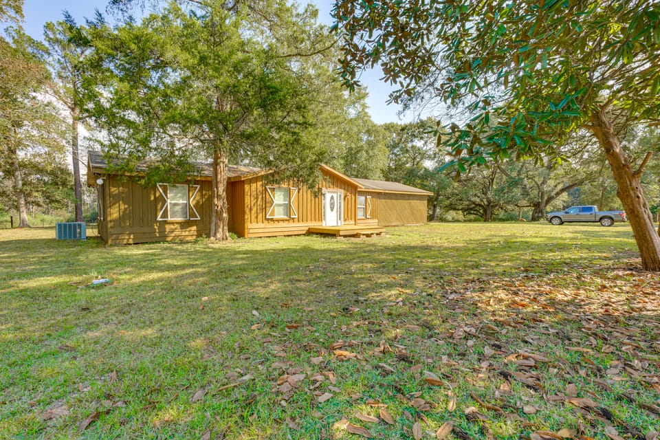 Get ready for a rural retreat at this spacious vacation rental in Poplarville. Surrounded by quiet woods and farm views, this 4-bed, 2-bath cabin is sure to provide the peace you've been searching for. Head to the coast for a day of waterfront exploration, or stay close to home and sample local sweet treats and barbecue in the Blueberry Capital of Mississippi. Experience small-town charm and relaxation all in one place!