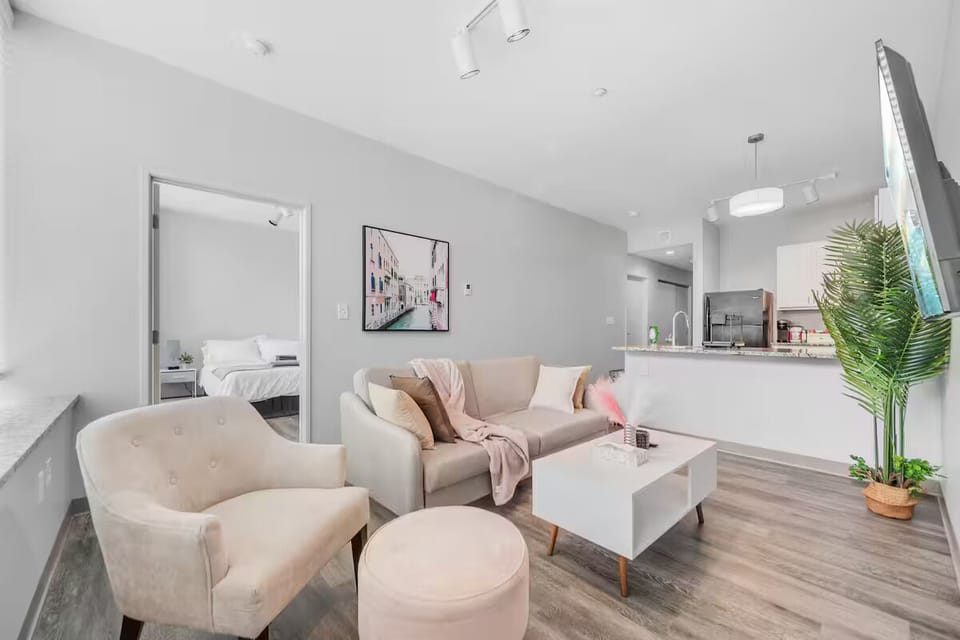 Relax with high-speed Wi-Fi, a smart TV with Roku, and an in-lobby dog wash station. Ideal for short or extended stays, this cozy space offers comfort, convenience, and walkable access to top dining, shopping, nightlife, and major attractions.