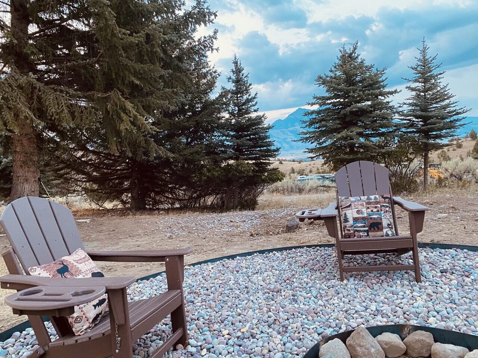 After a day of exploring the nearby Yellowstone National Park, return to the tiny house and relax in the cozy living area. Watch your favorite shows on the TV or gather around the firepit outside and roast marshmallows under the starry night sky.