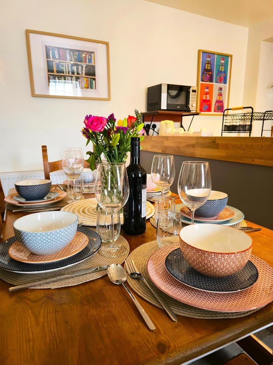 A spotlessly clean, cozy apartment above a pub in a pretty town. There's a co-op on the other side of the town square but it was possible that this would be closed at the time we arrived. Craig kindly left a few provisions in the apartment. There was a warm fire to sit next to in the bar downstairs in the evenings.