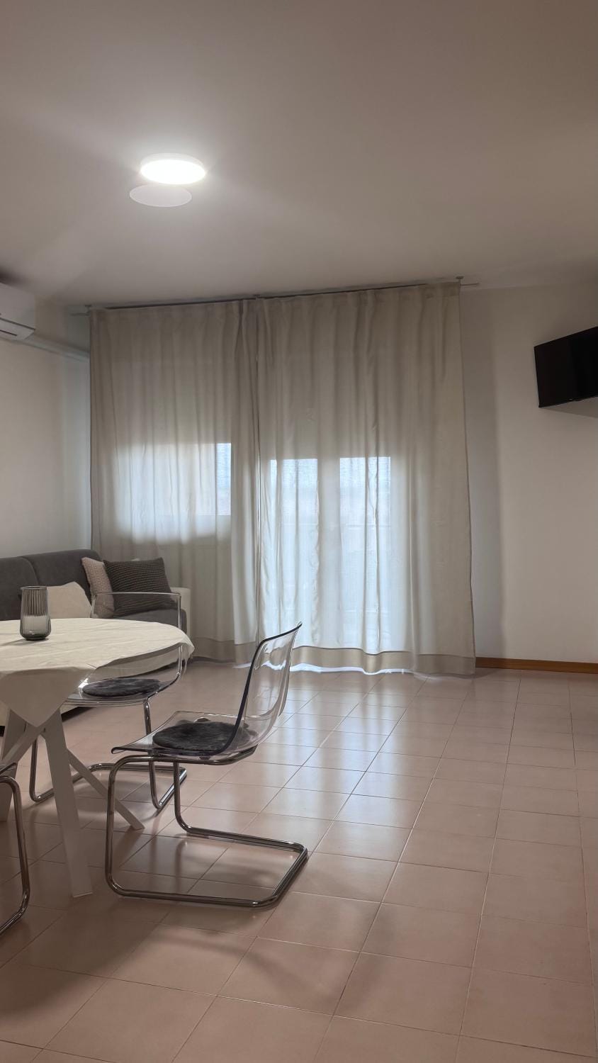 Die Lage war für uns top. Fußläufig in die Innenstadt und als Ausgangspunkt in alle Himmelsrichtungen optimal. Beim Parkplatz unter dem Haus gibt es 2 Bereiche, der eine, weiße Markierung, ist kostenfrei, der blaue kostenpflichtig. Wir hatten jedes Mal Glück und erwischten einen kostenfreien. Es gibt zwei Aufzüge, die gut funktionieren. Die sehr saubere Wohnung mit Balkon liegt im 6. Stock. Große Zimmer, Fernseher im WZ und SZ sowie AirCondition und Heizkörper. Die Betten sind sehr bequem. Beim Küchenblock ist ein separater, großer Kühlschrank, Mikro, Kaffeemaschine, alles was man braucht. Im Bad eine große, ebenerdige Dusche mit Shampoo und Duschgel, Waschtisch, WC und Bidet. Gleich über die Straße ist ein Conad und um die Ecke ist der für uns beste Pizza- und Tiramisukoch "Murales".