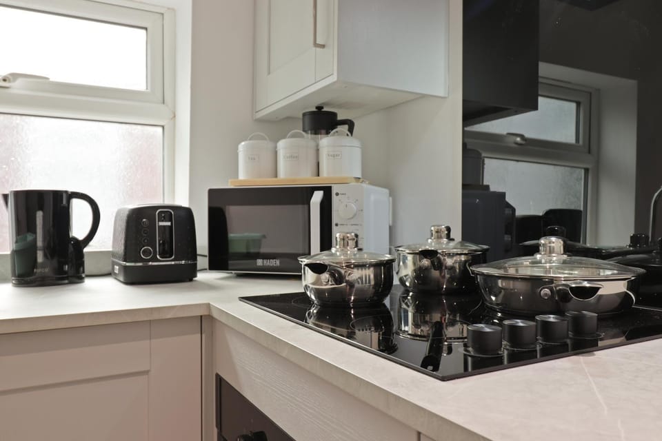 What amenities are available at 2 Bed Apartment in Chesterfield with FREE parking - Sleeps upto 5 - PERFECT for Workers & Professionals - Hosted by StayHostSave?