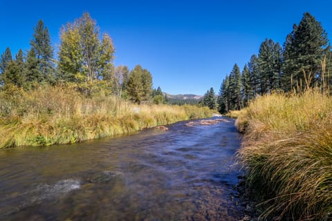Escape to this stunning riverfront home in Graeagle, CA, where the natural light floods the spacious open floor plan, offering breathtaking views of the Feather River and Mohawk Valley from multiple rooms and the expansive deck. Step outside and immerse yourself in the tranquility of the river with your private path and beach access for fishing, swimming, and picnicking. Book your stay now and create unforgettable memories in this picturesque setting.