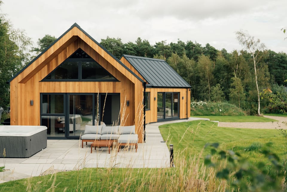 They have been designed from the beginning to provide our guests with the perfect holiday, with large beds, multiple bathrooms, large hot tubs and private gardens they are ideal for families or couples looking for that special getaway. Nestled in the woods they offer complete peace and tranquillity with no noise or light disturbances for miles around.