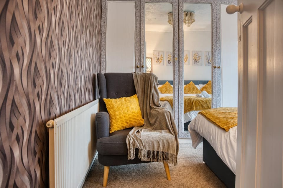 Indulge in a peaceful retreat at Entire house, with massage mattresses, sleeps 6 guests, our elegant House in Prestwich. Enjoy amenities including WiFi/Internet, Kitchen and Laundry services, and more.