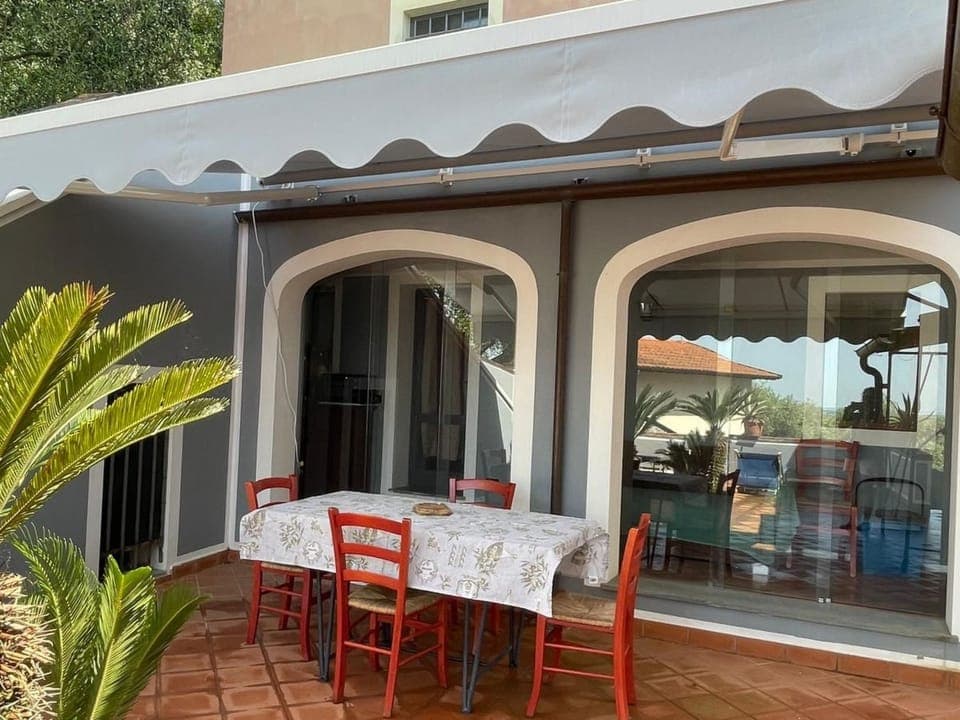 Outside, the garden, which belongs exclusively to the flat, invites you to relax. The covered terrace with comfortable garden furniture offers an idyllic spot to unwind or enjoy an evening barbecue together. This private oasis guarantees intimacy and tranquillity while you gaze out over the sea and enjoy the Tuscan sunshine.