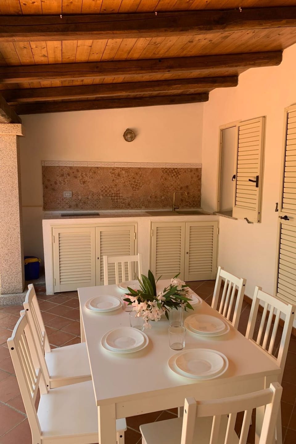 The interior kitchen is new and masonry, fully equipped with refrigerator, electric hob, pots and dishes. The apartment also has a large covered veranda with outdoor kitchen, ideal for having lunch and dinner in peace, respecting privacy.