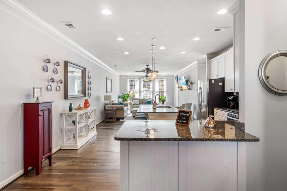 Business stays, family stays, couples stay, getaway vacation, and rental in Ocean View at Bishops Landing townhome with private washer/dryer, shared pool, tennis, gym for $280 for your next trip.