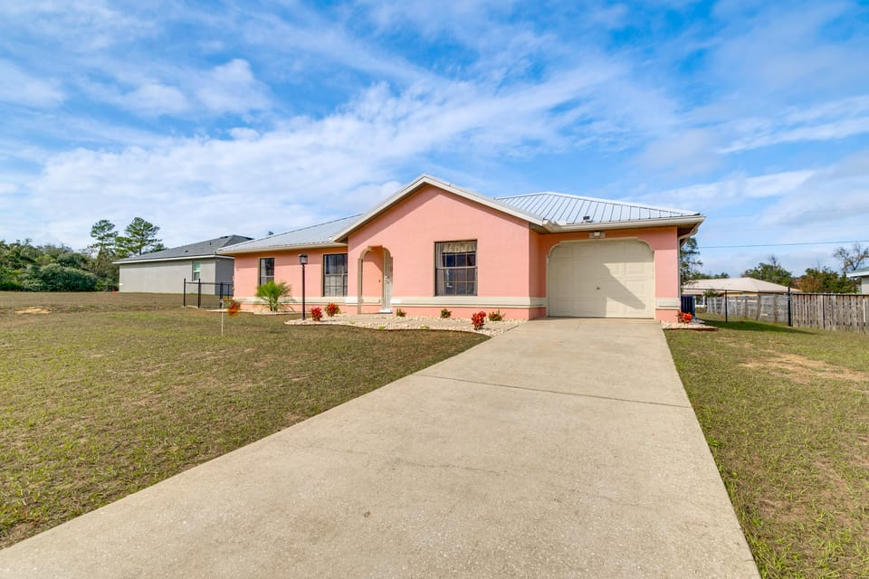 Let the Florida sun recharge your soul at this Ocala vacation rental — your family's launchpad for exploring the Horse Capital of the World! Paddle your way through Silver Springs Park, attend an event at the World Equestrian Center, or walk to Marion Oaks Dog Park and let your fur pal play. As night falls, retreat to the 3-bed, 2-bath home to play a round of cornhole or watch movies. Unleash the fun and book today!