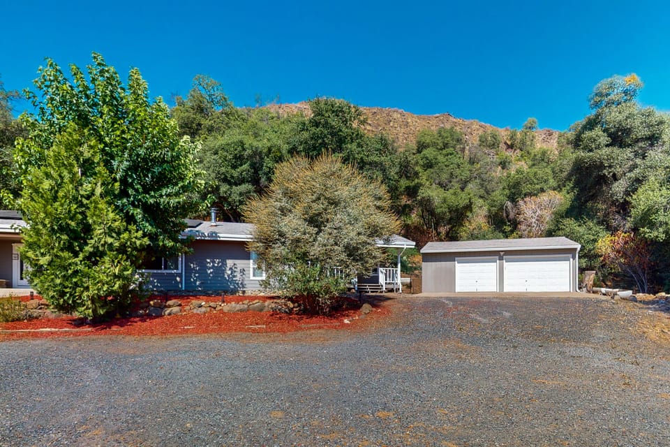 Nestled in the foothills, this private home offers effortless relaxation and complete peace. Spend your days spotting deer and turkey. Even better, peek-a-boo views of Yosemite are available when the weather is clear. Full of light and lovingly decorated, the interior of the home evokes a rustic charm with modern amenities. Enjoy precious moments with loved ones while playing cards, chess, or Scrabble in front of the wood stove. A foosball table and cornhole are soon-to-be additions!