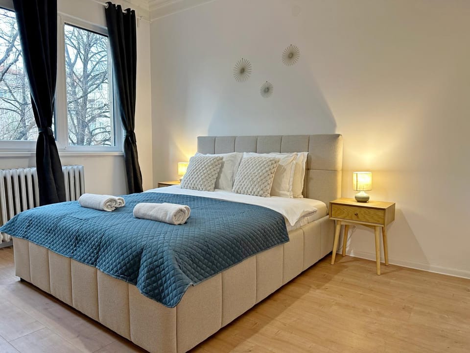 Spacious bright cozy 2BDR fast Wi-Fi next to Park is a recently renovated apartment in the center of Sofia, a 2-minute walk from Vasil Levski Stadium Station and 0.8 miles from NDK.